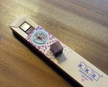 Nos chocolats artisanaux, réalisés en collaboration avec KKO3, marient la finesse du cacao à la douceur fruitée du damasson, petit fruit emblématique de notre région.