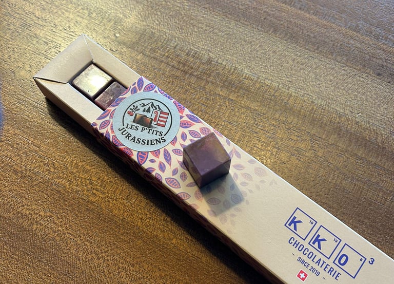 Chaque carré de chocolat raconte une histoire — celle de la nature jurassienne, de nos vergers et de la créativité de notre jeunesse.